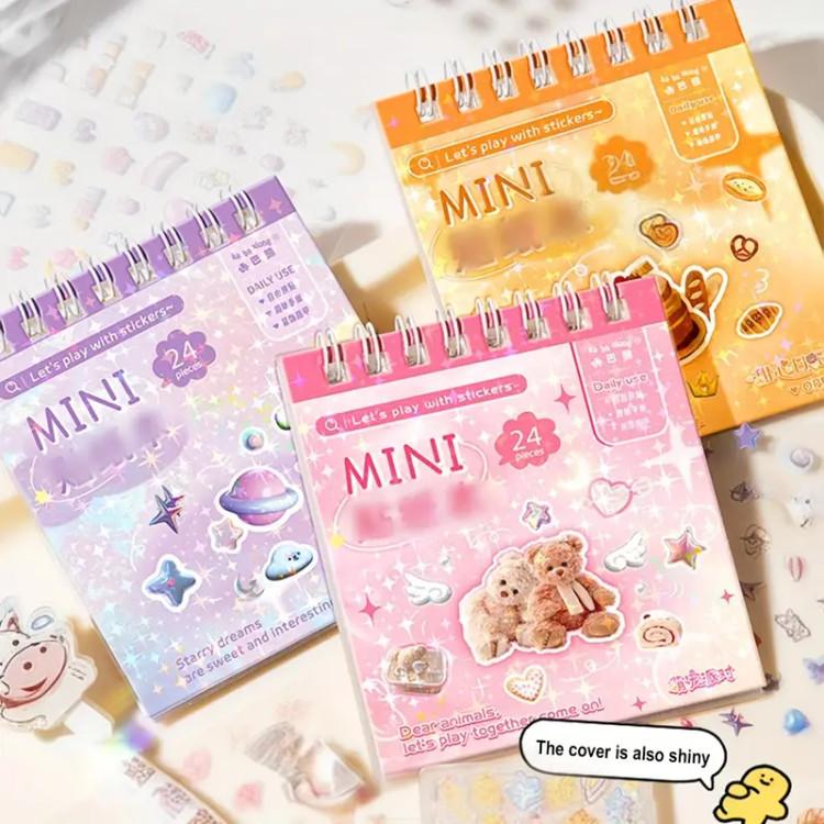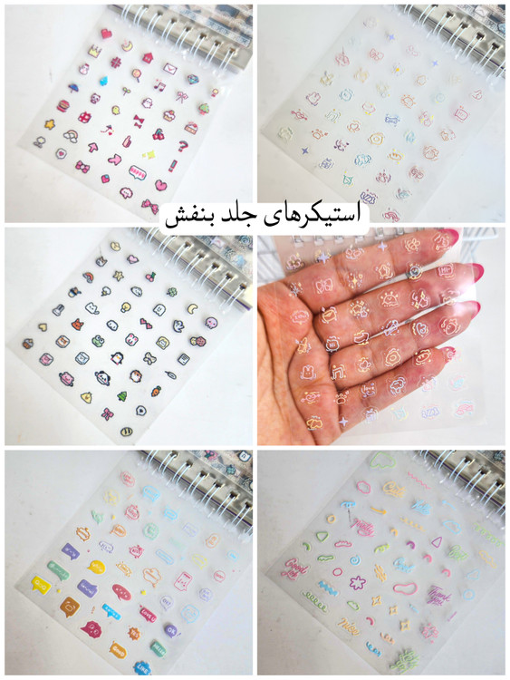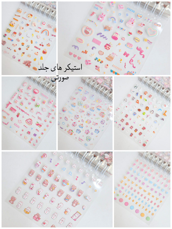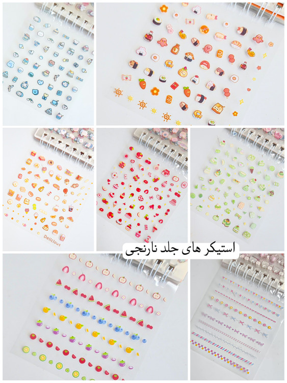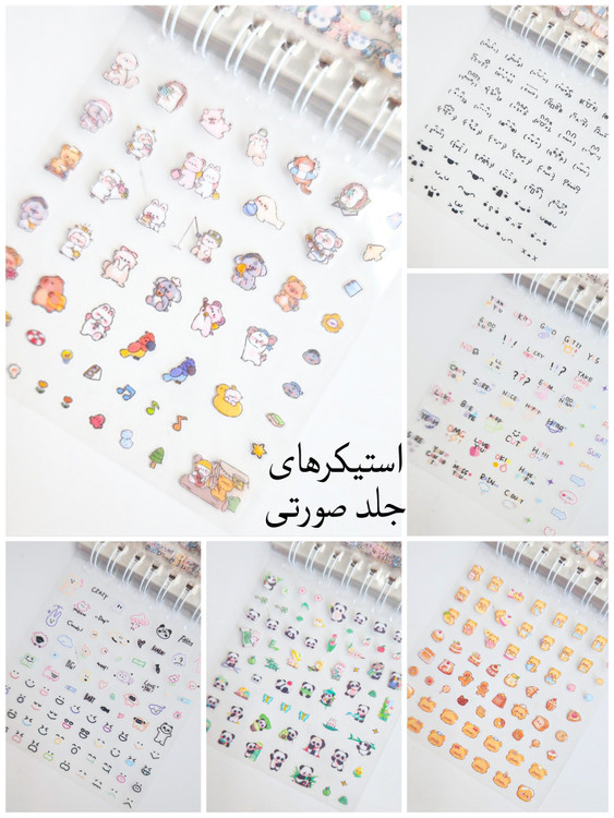 هر دفترچه:: ۲۴ برگ استیکر داره/تو هربرگ تقریبا بین ۴۵ تا ۴۸ تا استیکر