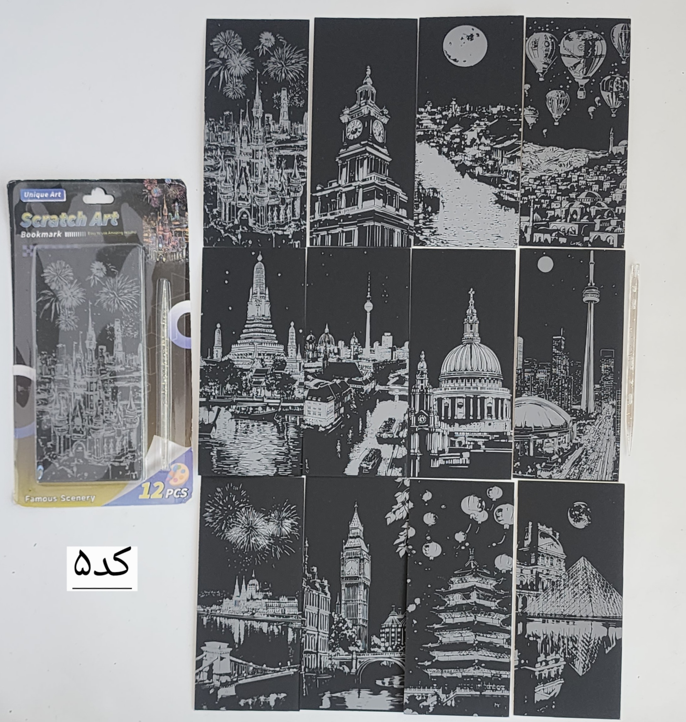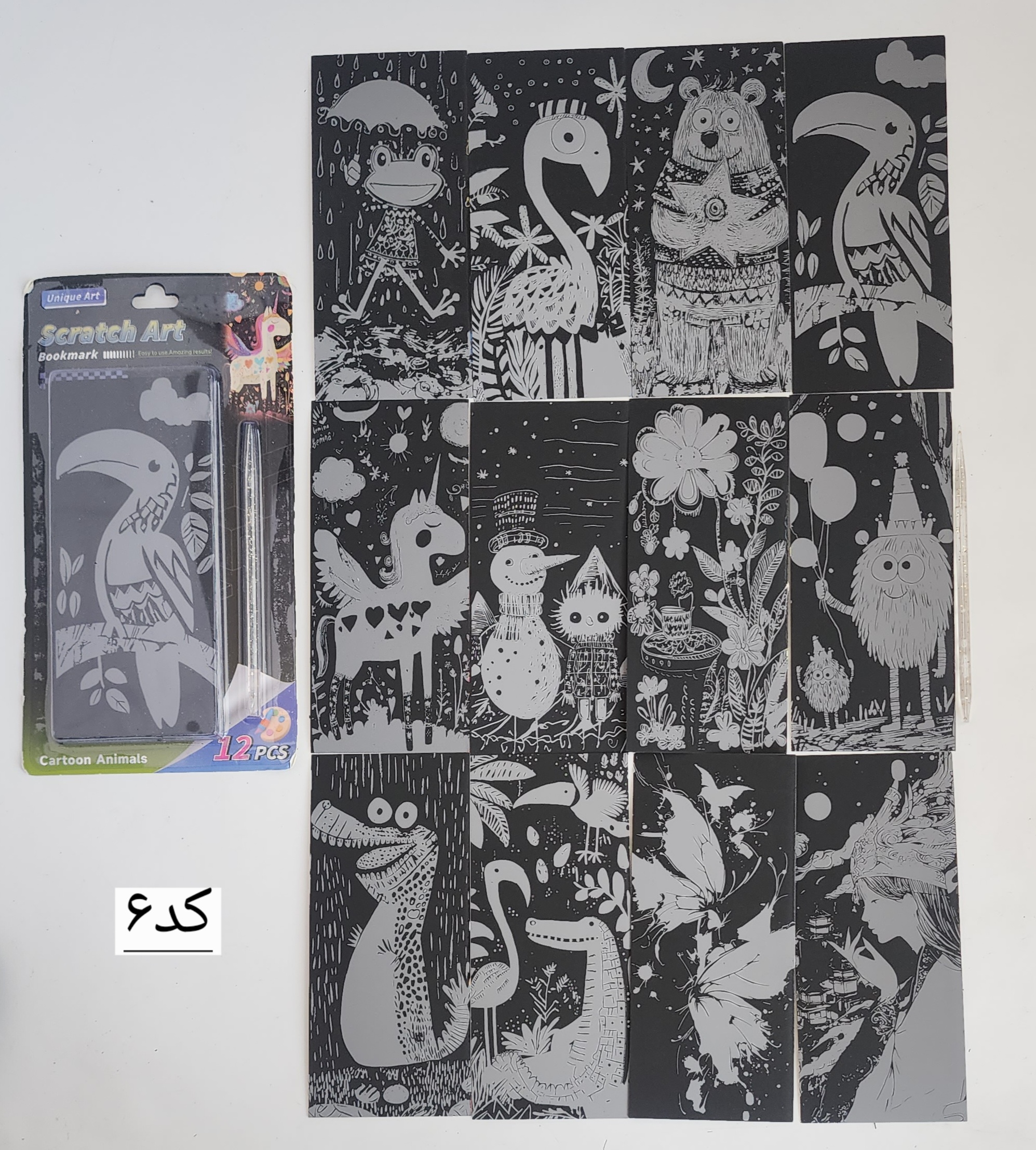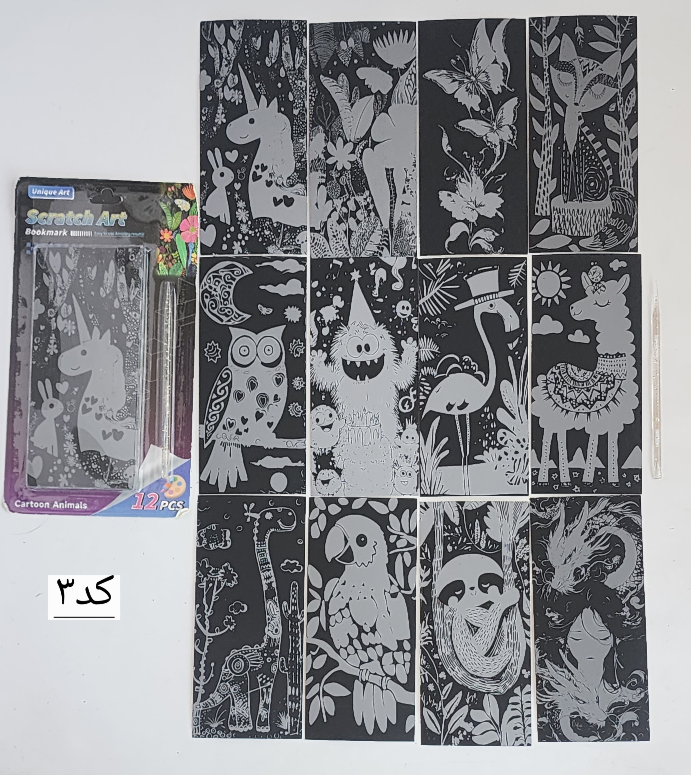 تعداد برگه نقاشی : ۱۲ برگ+قلم مخصوص خراشیدن