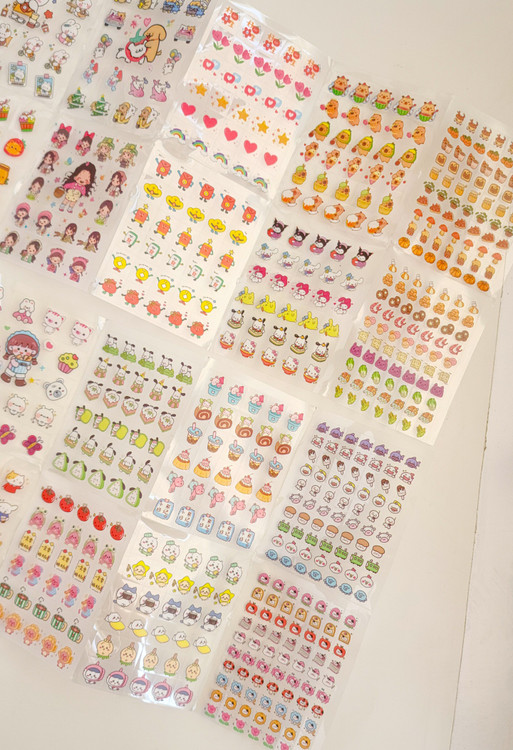 ۲۴ ورق استیکر که داخل هر ورق کلی استیکر ریز داره برش خورده هستن همراه یک البوم دکمه دار که میتونید ورق استیکرهارو داخلش قرار بدید