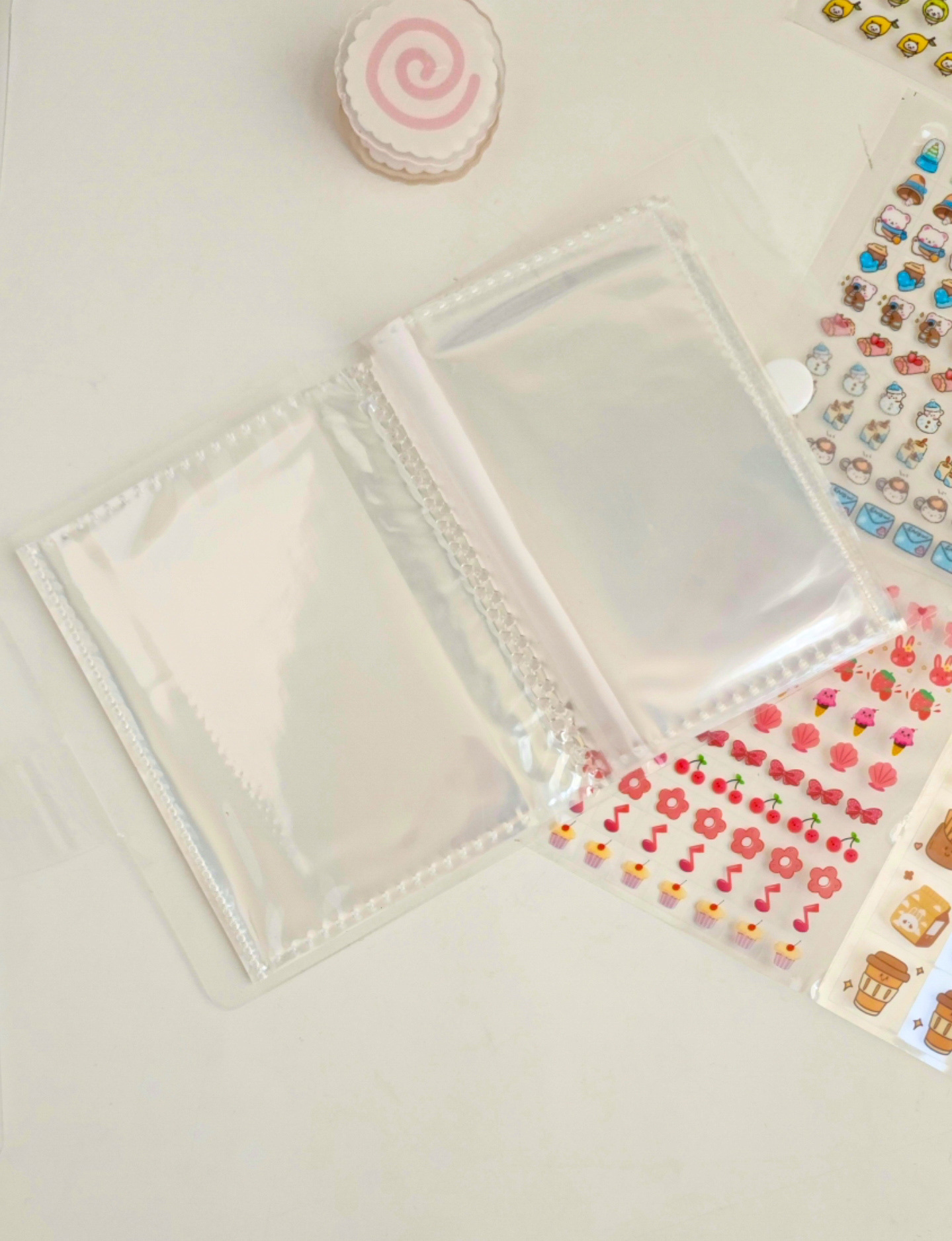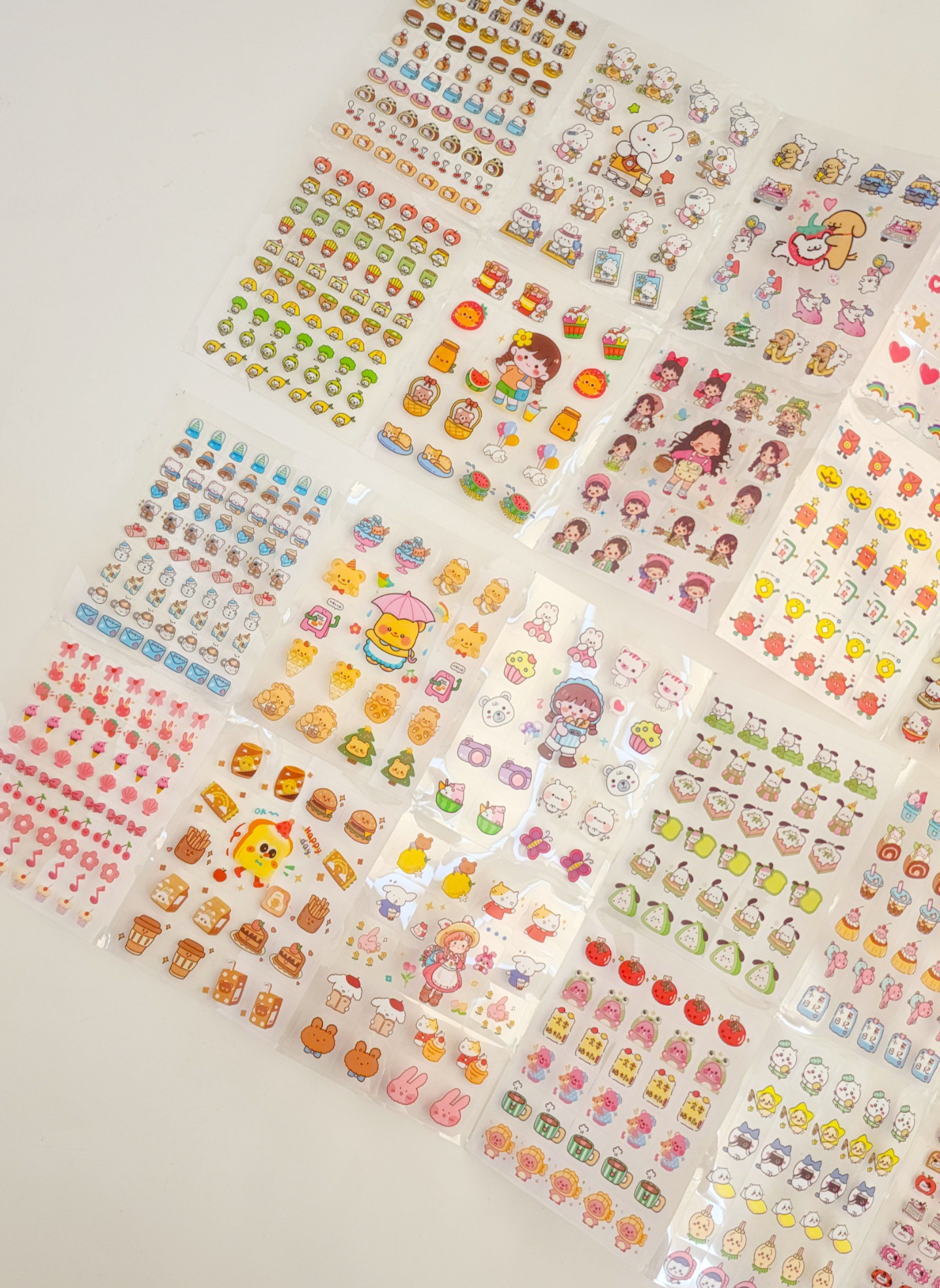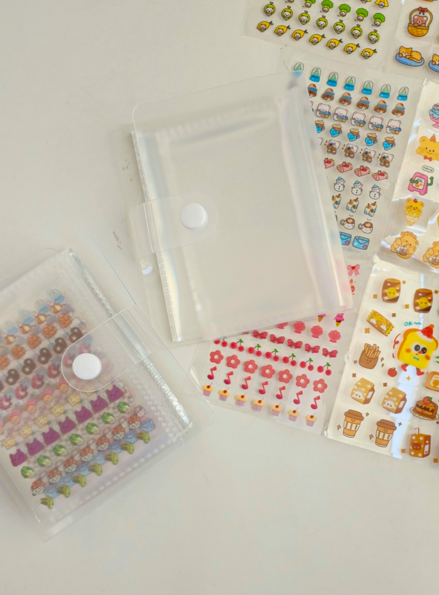۲۴ ورق استیکر که داخل هر ورق کلی استیکر ریز داره برش خورده هستن همراه یک البوم دکمه دار که میتونید ورق استیکرهارو داخلش قرار بدید