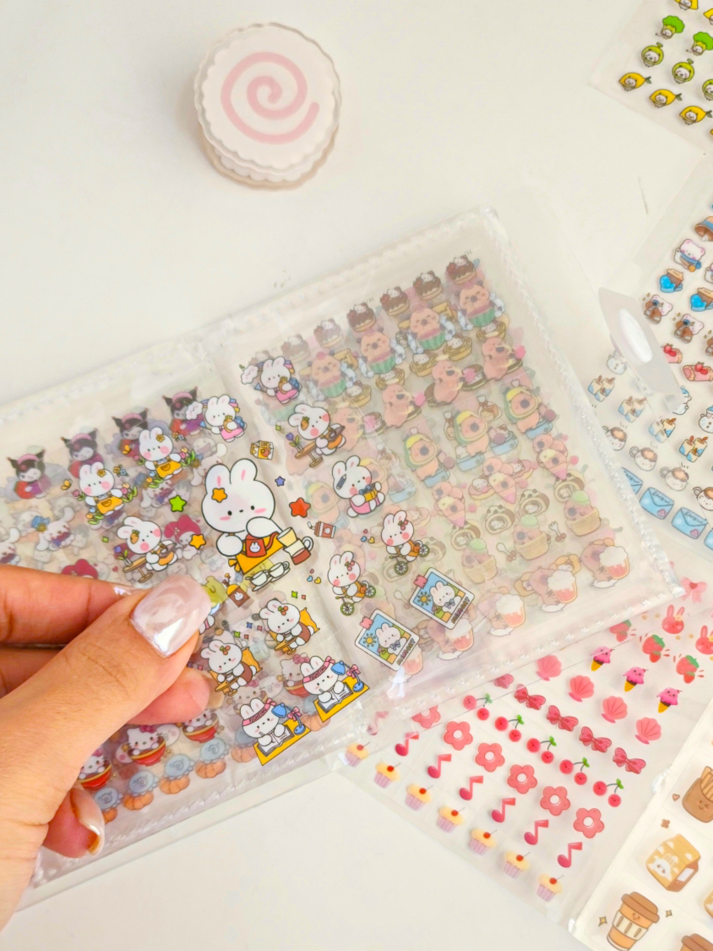 مشخصات: ۲۴ ورق استیکر که داخل هر ورق کلی استیکر ریز داره برش خورده هستن همراه یک البوم دکمه دار که میتونید ورق استیکرهارو داخلش قرار بدید